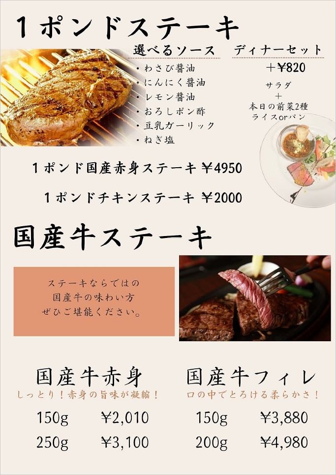 ステーキはともかく1ポンドハンバーグとチキンステーキはありだな。肉の質がわからんがステーキだとくいしんぼとかやっぱりステーキの方が安いしなあ…