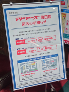 最近町田自体に行くこと減ったけどとうとうアドまで…