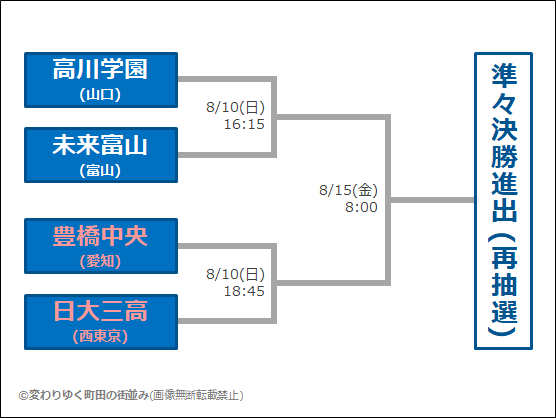 ここで勝ち進むと、次の試合は8月15日(金) 8:00開始の11日目第1試合で、