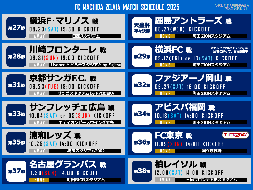 サッカー「FC町田ゼルビア2025年8月10日(日)・16日(土)・20日(水)にホーム3連戦を控え、