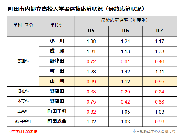 少子化もあるかとは思いますが山﨑、野津田、町田工科、町田総合といずれも偏差値40程度の高校が近いエリアに多すぎると思います