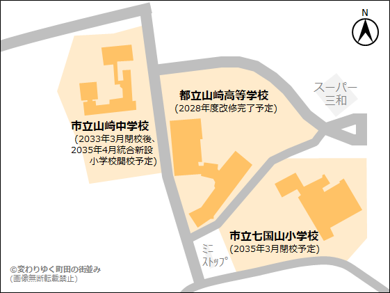 山崎高と野津田高は定員割れしている事だし、この2校を統合して効率化した方が良い