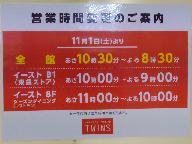 東急ストアとレストラン街は変更無しなのは一安心。できれば一階の飲食系のテナントの一部だけでも引き続き10時開店で閉店を20時半にしてくれればもっと便利になる気がするんだけどな。