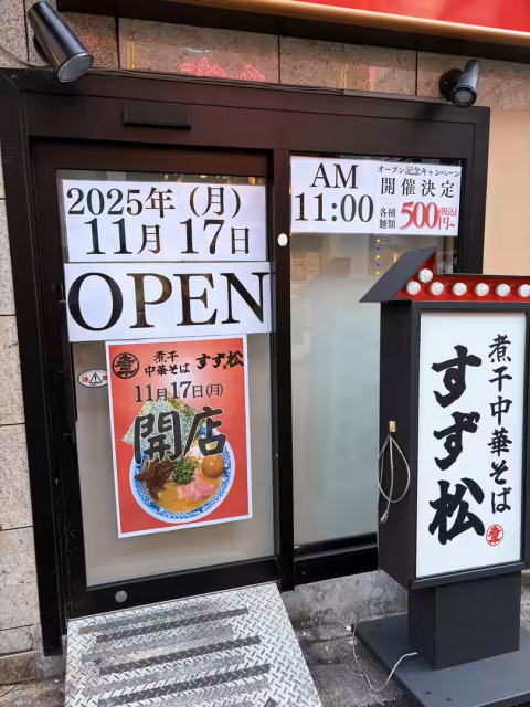 町田駅前・ラーメン店跡に「煮干中華そば すず松」オープン記念で麺類500円に