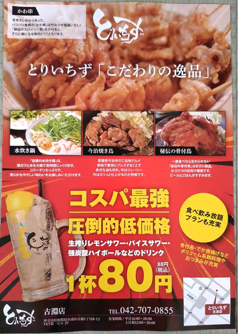 JR古淵駅前・居酒屋跡に「大衆とり酒場 とりいちず 古淵店」オープン
