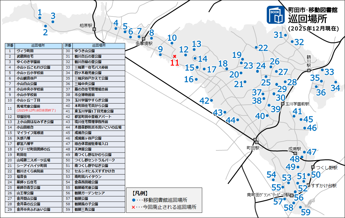 鶴川にも、鶴川図書館とか駅前図書館など分館がある?なので巡回図書館の立ち寄りポイントが少ないのかもね。