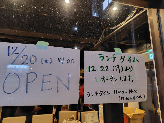 12月22日(月)11時からランチ営業を開始予定です。