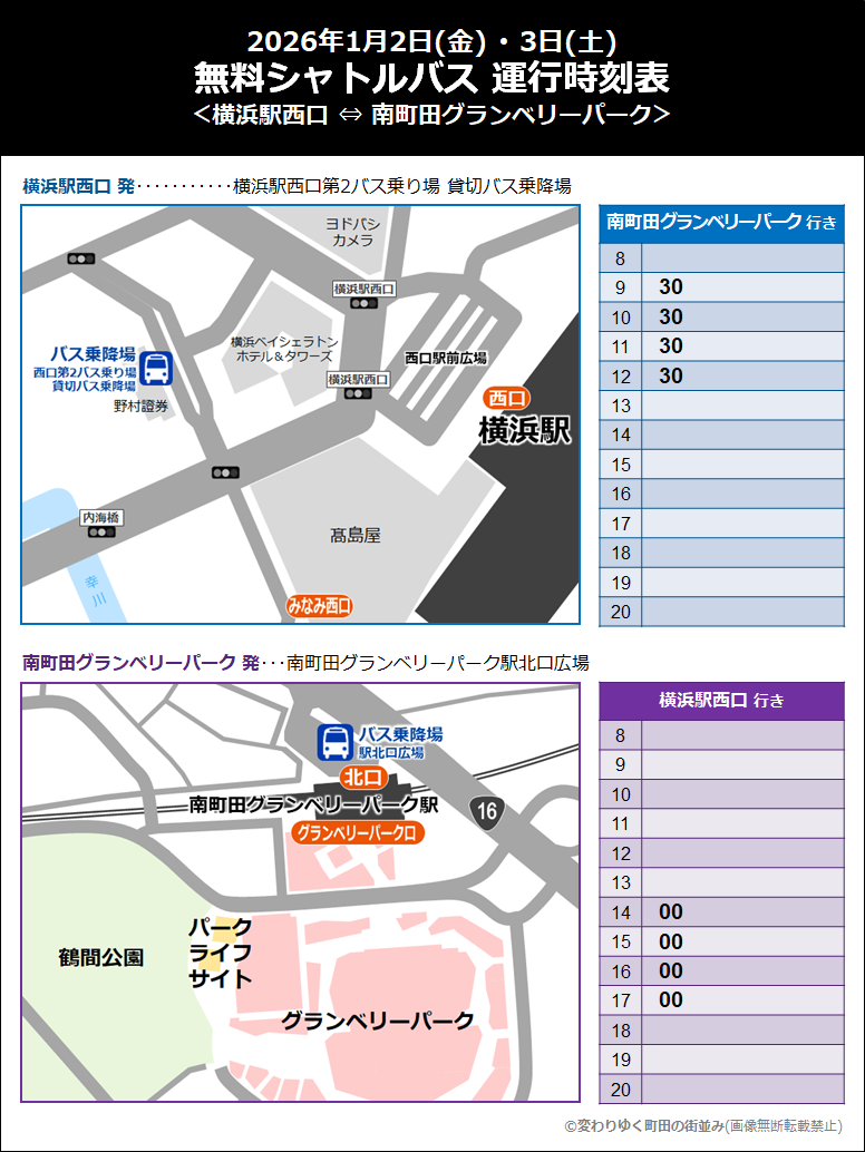 横浜駅西口から無料シャトルバスだと片道500円のお得、すごい太っ腹だ。横浜発は施設を利用しない人が「無料」に釣られて目的外利用と言うことはないだろうか。少し心配ではある。