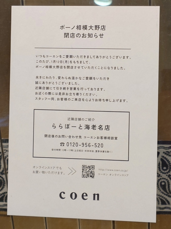 相模大野駅ビル店も移転。
