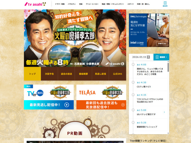 テレビ朝日系列で毎週火曜19時50分から放送の「日本探求アカデミックバラエティ 火曜の良純孝太郎」では、