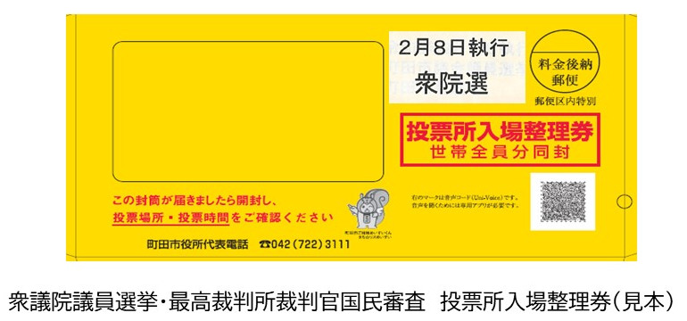 投票所入場整理券を別の「白い封筒」で、2026年2月4日(水)以降に順次送付する予定となっており、