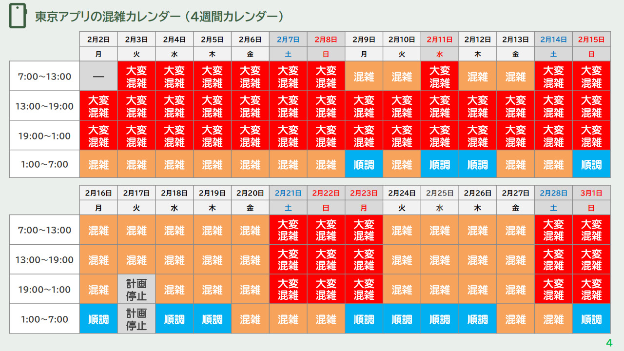 <画像>東京アプリの混雑カレンダー(4週間カレンダー)(都発表資料より)