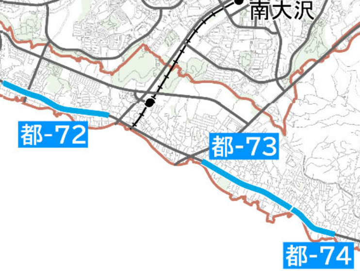 現時点で道路拡幅は事業化されていないものの、東京都が2025年度末の策定に向けて公表した案では、
