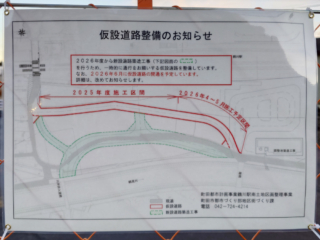 工事期間中の迂回路として「仮設道路」の整備を進め、2026年6月に開通予定です。