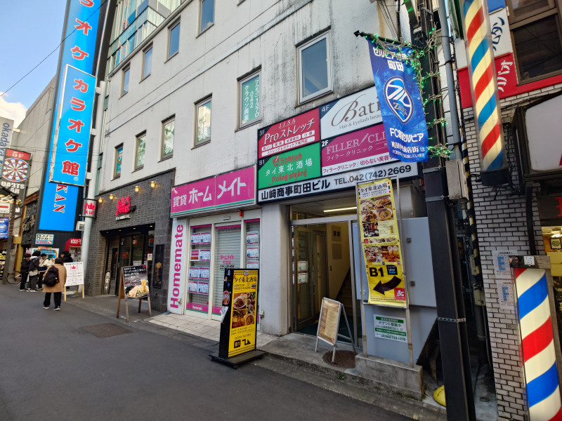 小田急町田駅南口・町田レンガ通り商店街沿いの「山崎商事ビル」の地下1階にある