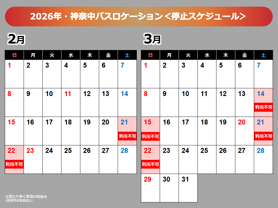 2026年2~3月の土日にかけて計6日間はサービス全面停止を予定しており、