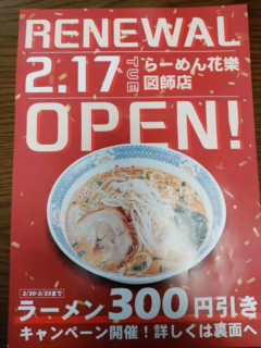 芝溝街道沿い・図師バス停前のラーメン店「らーめん花樂 図師店」が、