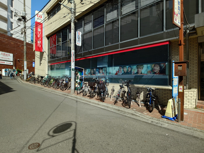 <写真>駐輪場が隣接する「小田急町田ビル」。三菱UFJ銀行が入居している。
