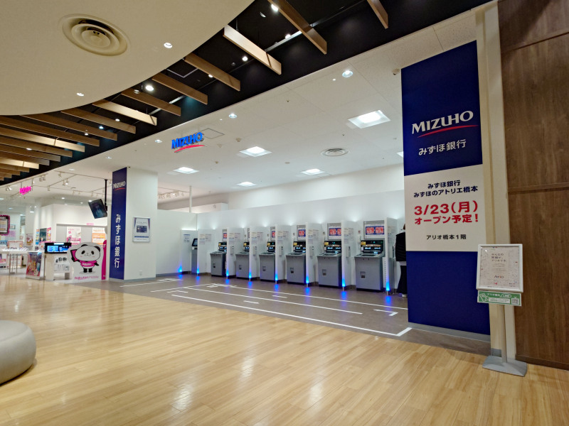 ATMコーナーは2階・ジェイコムショップ跡に「みずほ銀行 町田支店アリオ橋本2階ATM出張所」として