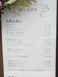 喫茶 花は、様々なドリンクメニューに加え、軽食(フード)やおやつ(デザート)も提供する喫茶店で、